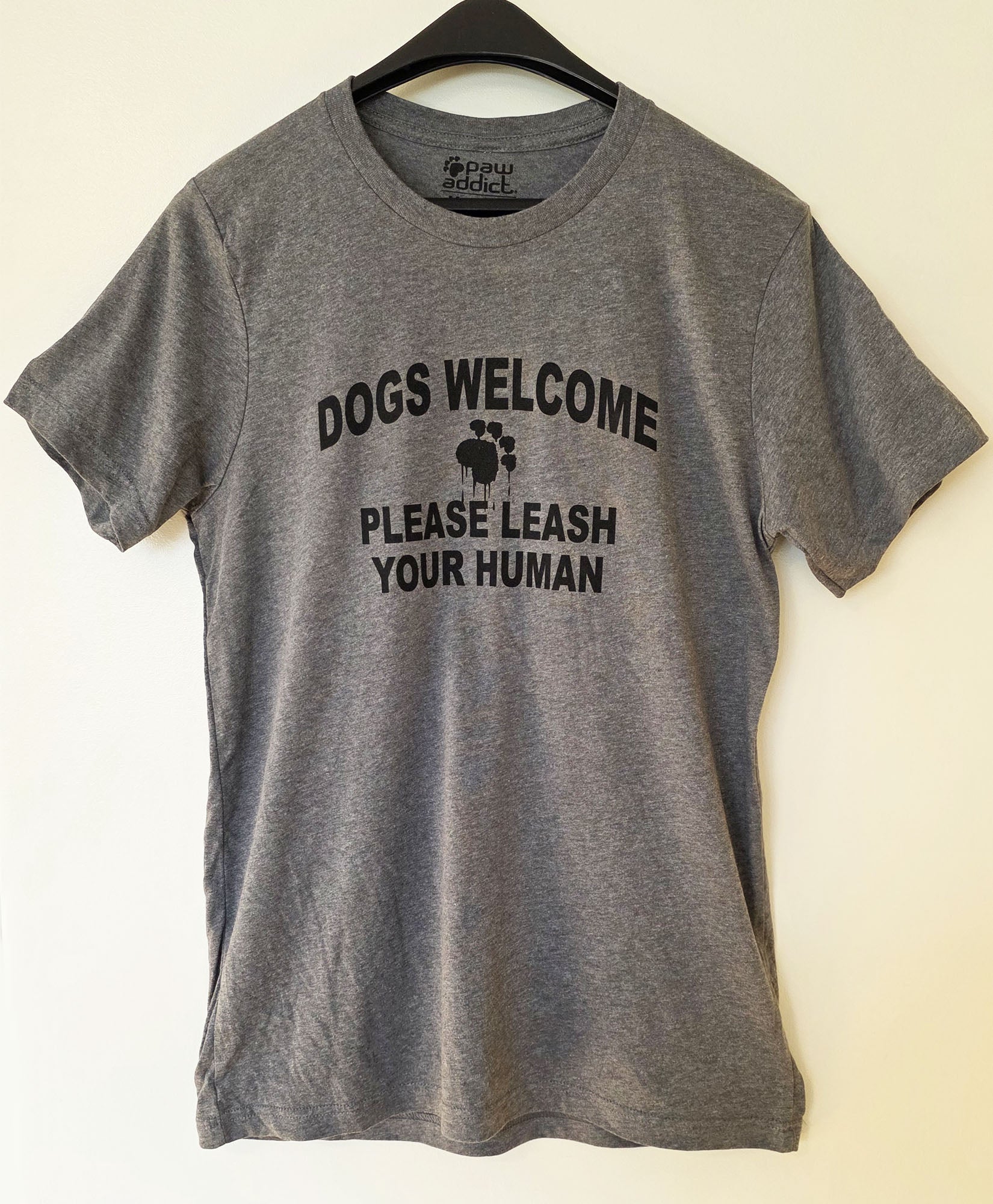 UNISEX SIZE T shirt. Made of 52% combed ringspun cotton and 48% polyester in dark heather. We print this Paw Addict T-shirt in the USA with silk screen design in soft feel ink. Design features our statement, haaa. well you understand. Great for dog lovers. Female model is 5ft 5 inches, 145 pounds and wearing size small Tshirt. Consider this shirt fitting as MALE/UNISEX sizing.